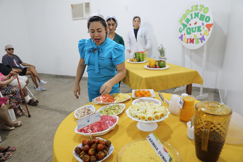 Com uma mesa repleta de frutas frescas e alimentos saudáveis e buscando introduzir uma nova rotina de alimentação saudável na vida das pessoas idosas institucionalizadas, foram distribuídas diversas frutas para a degustação, como banana, abacaxi, mamão, melão, laranja, abacate e outras diversidades frutíferas. A equipe multidisciplinar orientou os idosos na montagem da refeição, incentivando a adição do cupuaçu para enriquecer a experiência alimentar.