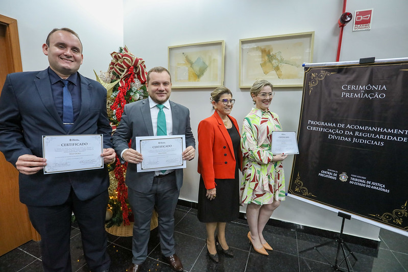 A Procuradoria Geral do Município (PGM), órgão integrante da estrutura da Prefeitura de Manaus, recebeu, nesta terça-feira, 12/12, prêmio do Tribunal de Justiça do Estado do Amazonas (TJ-AM), na categoria ‘Selo Ouro’, pela regularização de dívidas judiciais. Esta foi a primeira edição da premiação concedida pelo tribunal, em reconhecimento aos esforços do município no pagamento de precatórios. Além da PGM, mais duas instituições da gestão municipal foram contempladas: a Fundação Dr. Thomas (FDT) e a Fundação Municipal de Cultura, Turismo e Eventos (Manauscult). A entrega aconteceu na sede do TJ-AM, na Avenida André Araújo, no Aleixo.