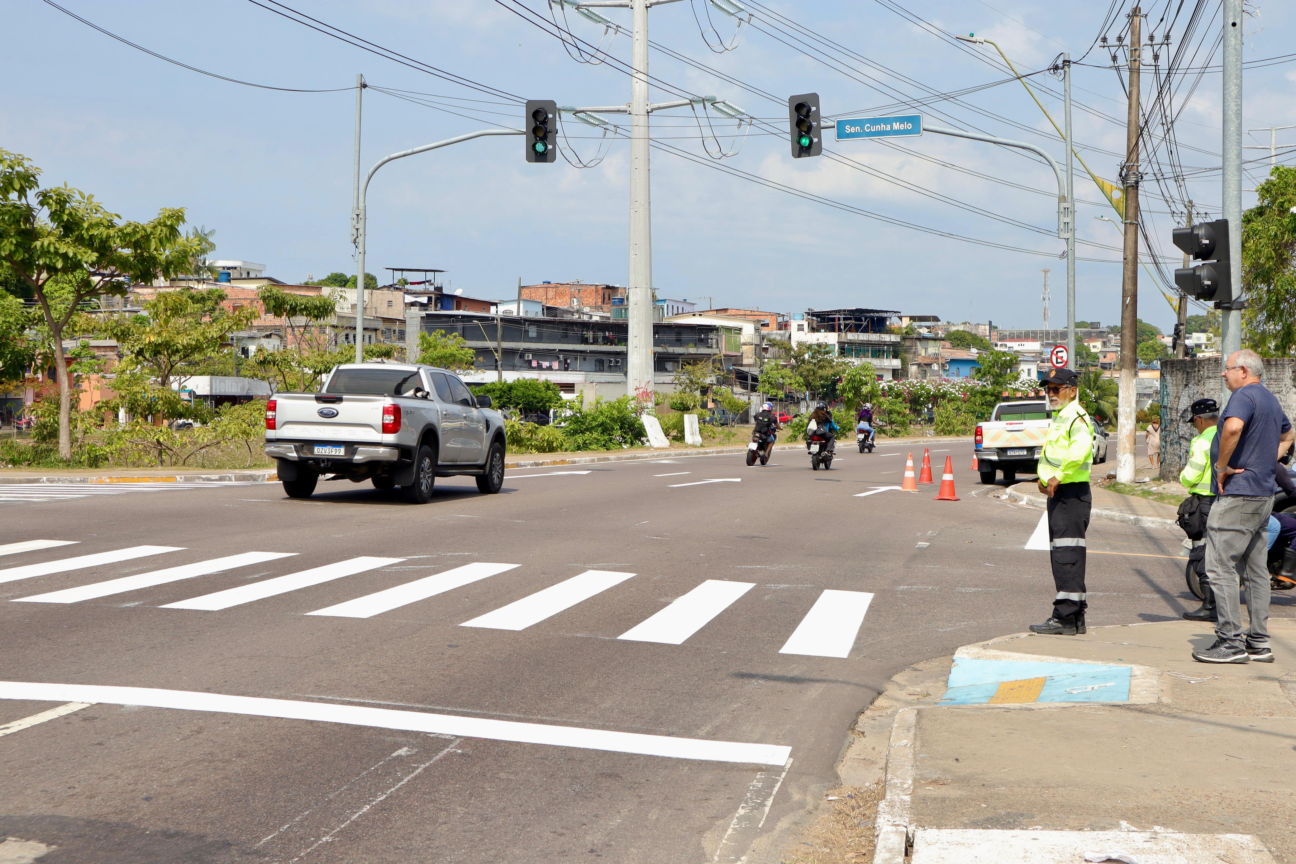 A Prefeitura de Manaus, por meio do Instituto Municipal de Mobilidade Urbana (IMMU), implantou, na manhã desta sexta-feira, 12/9, um novo jogo semafórico no cruzamento da rua Senador Cunha Melo com a avenida Brasil, zona Oeste da cidade. A nova sinalização vai proporcionar mais segurança aos motoristas e permitir travessia segura e em local adequado aos pedestres.