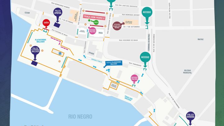 Já o público que for ao palco da Banana poderá sair pelo estacionamento do porto (mesmo local de entrada, ao lado da Asya Fashion) e ainda por um novo acesso, passando pela Capitania dos Portos e terminal de cargas, saindo ao lado do mercado Adolpho Lisboa, na Manaus Moderna.