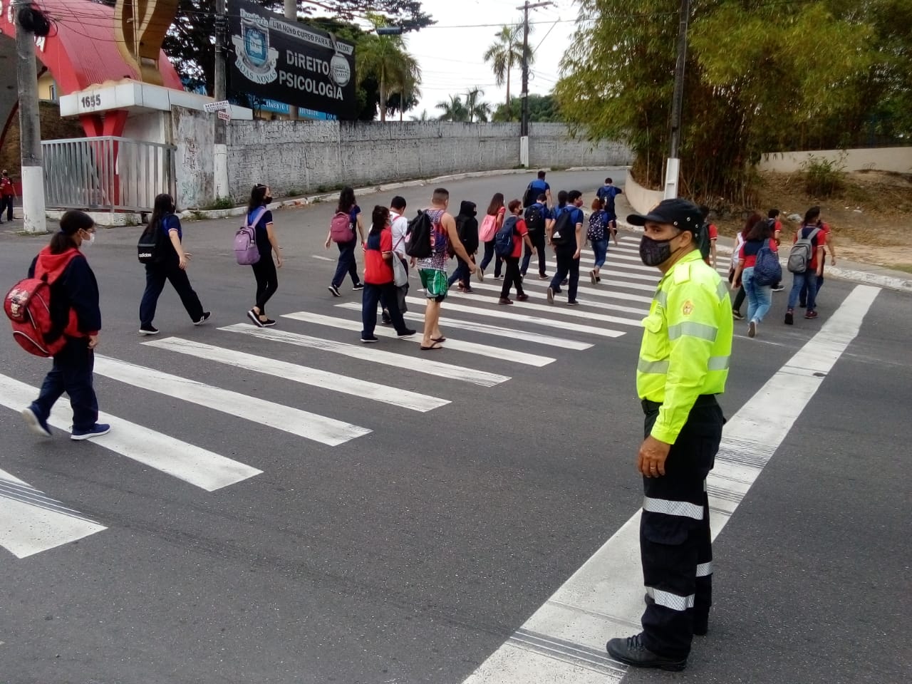 Com o retorno das aulas presenciais, a Prefeitura de Manaus, por meio do Instituto Municipal de Mobilidade Urbana (IMMU), intensificou a operação “Travessia Segura”, em vários pontos da capital, e nesta sexta-feira, 8/10, as escolas públicas Djalma Batista, no bairro Japiim, zona Sul, e Gonçalves Dias, no Dom Pedro, zona Centro-Oeste, foram algumas das unidades de educação que receberam atenção dos agentes de trânsito.