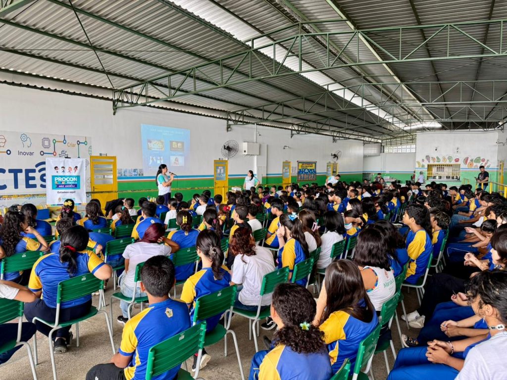 A Prefeitura de Manaus, por meio do Serviço de Atendimento e Proteção ao Consumidor (Procon Manaus), realizou, nesta sexta-feira, 27/3, mais uma edição do projeto “Procon Manaus nas Escolas”. A ação chegou à escola municipal Santa Rosa 2, localizada na zona Oeste da capital, promovendo informações e orientações qualificadas acerca dos direitos do consumidor junto aos estudantes. Ao todo, mais de 300 alunos participaram da iniciativa.
