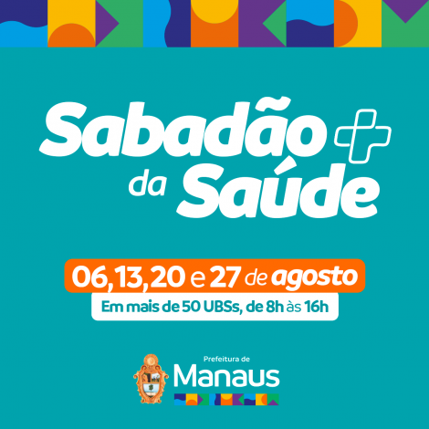 Sabia que a Prefeitura de Manaus está com mais de 50 unidades de saúde abertas em todos os sábados do mês de agosto, de 8h às 16h, para ampliar o atendimento à população? É o “Sabadão da Saúde”, ação direcionada principalmente ao atendimento de hipertensos e diabéticos, de mulheres para a coleta do exame preventivo, gestantes (pré-natal) e multivacinação infantil.
