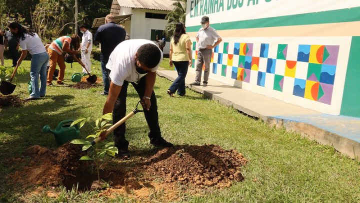 A escola municipal Rainha dos Apóstolos, localizada no quilômetro 23, na BR-174, na zona rural, recebeu na manhã desta quarta-feira, 9/2, o título de unidade polo do projeto “Manaus, te quero verde”, da Prefeitura de Manaus, coordenado pela Secretaria Municipal de Educação (Semed). A unidade de ensino polo servirá como ponto de referência para outras escolas do entorno poderão retirar as mudas para fazer o plantio na comunidade.