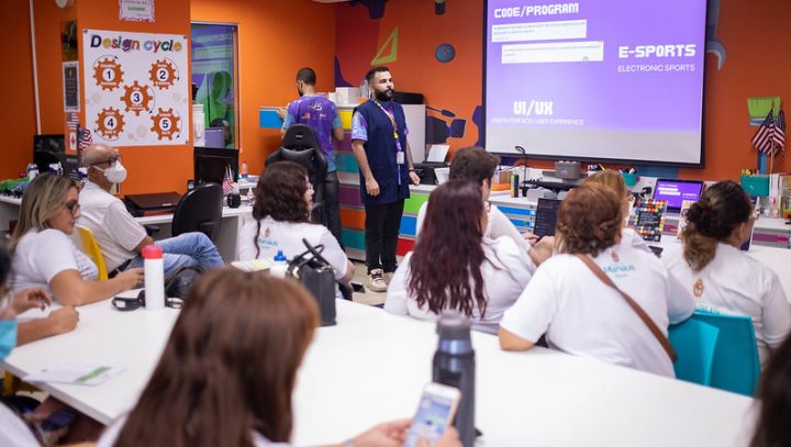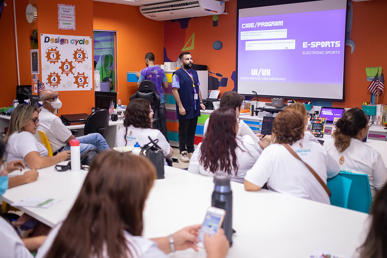 A parceria entre a Prefeitura de Manaus e o Instituto Cultural Brasil – Estados Unidos (Icbeu) ofereceu aos professores da Prefeitura de Manaus, que atuam no projeto “English For Kids”, a formação “Coding Club” com o apoio da embaixada dos Estados Unidos. O estudo aconteceu nesta sexta-feira, 26/8, no Espaço Maker, da escola de idiomas, na avenida Joaquim Nabuco, Centro.