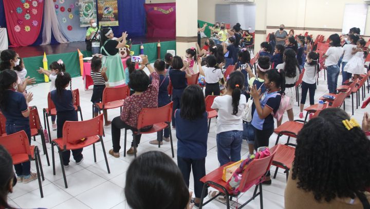 A Prefeitura de Manaus realizou, nesta quarta-feira, 11/8, na escola Mamãe Margarida, instituição conveniada com a Secretaria Municipal de Educação (Semed), no bairro São José, na zona Leste, uma programação especial em alusão ao Dia do Estudante, para motivar a leitura e a escrita no ambiente escolar. Com contação de histórias, poesias, músicas infantis e muita brincadeira, a atividade contou com a presença de escritores locais e com um cenário totalmente lúdico.