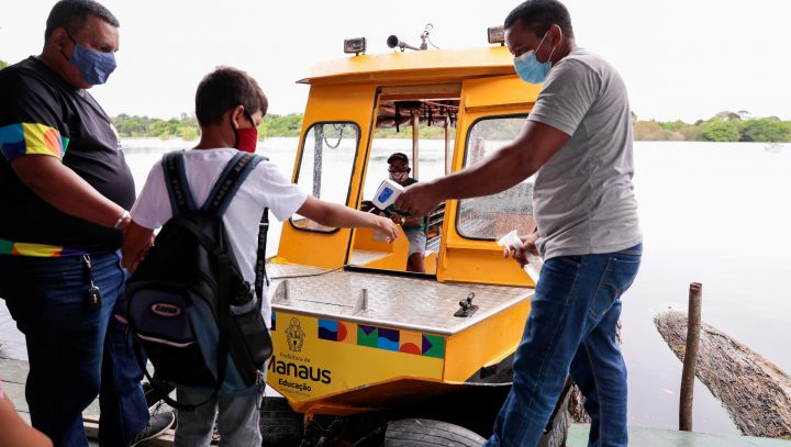 Os mesmos cuidados em relação à prevenção da Covid-19 que as escolas têm ao receber os alunos, as lanchas também possuem, como aferição da temperatura, uso de máscara e com álcool em gel, além do distanciamento entre os assentos. Ao serem transportados os estudantes utilizam ainda coletes salva-vidas.