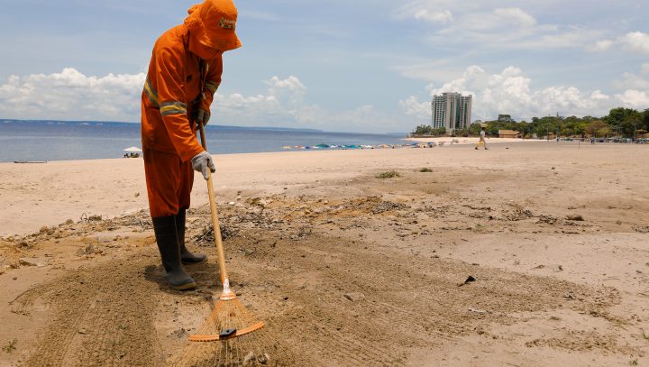 Com o Rio Negro baixando suas águas em 7,26 metros desde o recorde de cheia registrado em junho deste ano, quando atingiu 30,02 metros, a praia perene da Ponta Negra está com a faixa de areia ampliada e recebe serviços de manutenção nesta quinta-feira, 30/9, da Prefeitura de Manaus, para melhor atender aos frequentadores do espaço. Nesta semana, o prefeito David Almeida fez visita à praia para verificar a estrutura e a manutenção para abertura do local neste sábado, 2/10, que será o primeiro teste para reabrir o balneário em um dia do final de semana.