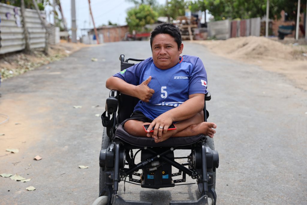 “Foram sete anos esperando. Agora com esse asfalto está muito bom, vai ajudar bastante a minha locomoção na cadeira de rodas. Antes era tudo no barro, muita poeira e eu sentia muita dificuldade, agora só tenho a agradecer à prefeitura por melhorar a minha vida e da comunidade,” comemora o morador.