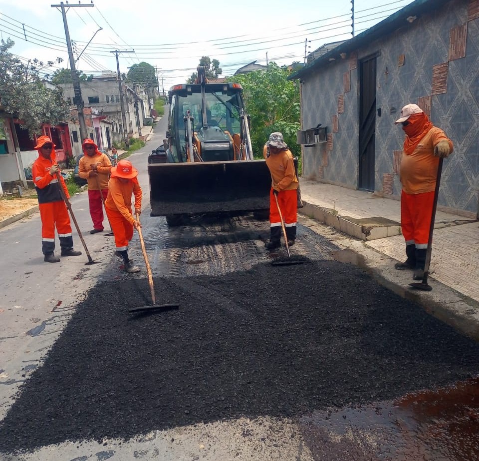 A Prefeitura de Manaus, por meio da Secretaria Municipal de Infraestrutura (Seminf), prossegue nos serviços de manutenção asfáltica neste sábado, 1/2, no ramal do Brasileirinho, no bairro Jorge Teixeira, zona Leste.