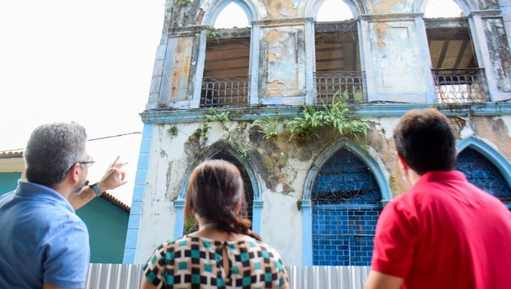O conhecido Casarão de São Vicente, construído em um ponto de referência arquitetônica e da própria história da capital, faz parte dos projetos da Prefeitura de Manaus dentro do programa “Nosso Centro”, lançado pelo prefeito David Almeida, e sua reforma e restauração estão previstos para licitação ainda este ano. Em visita técnica na segunda-feira, 26/7, ao endereço na rua Bernardo Ramos, esquina com o beco Casemiro, Centro, arquitetos do Instituto Municipal de Planejamento Urbano (Implurb) vistoriaram a edificação para readequar o projeto em desenvolvimento, para que o casarão possa abrigar um hub de inovação e espaço de coworking.