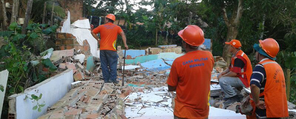 A Defesa Civil de Manaus realizou, neste fim de semana, a demolição de dez casas localizadas na rua Iarapé, no Monte das Oliveiras, zona Norte. As residências foram construídas em cima de barranco e, devido à instabilidade do solo registrada durante vistoria de técnicos do órgão, foi constatada a necessidade de remoção das famílias como medida preventiva para que desastres sejam evitados.