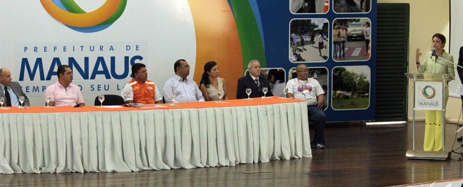 A primeira dama do município e secretária municipal de Assistência Social e Direitos Humanos, Goreth Garcia, recebeu do promotor da Campanha “Construindo Cidades Resilientes” da ONU, Sidney Furtado, o certificado da escolha de Manaus na campanha. O secretário chefe da Casa Militar, Fernando Farias, fez a abertura do evento falando da importância da participação da comunidade.