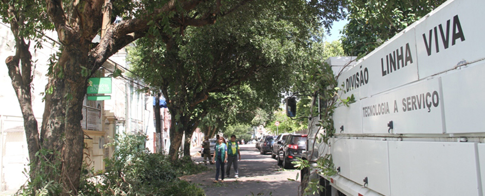 A ação contou com a poda de manutenção preventiva dos indivíduos arbóreos que se encontravam em conflito com a rede elétrica naquela área, além da avaliação do estado fitossanitário das árvores.