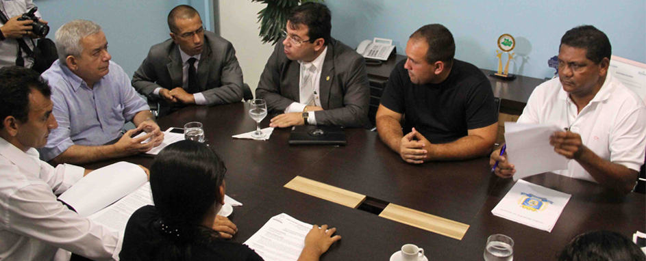 O secretário da Casa Civil, Lourenço Braga, e os vereadores Fabrício Lima (SDD), professor Bibiano (PT) e Wilker Barreto (PHS), líder do prefeito na Câmara Municipal de Manaus (CMM), receberam, nesta quarta-feira, 30, uma comissão formada por dez membros da Guarda Municipal para discutir pontos da pauta de reivindicação protocolizada na prefeitura, no último dia 28. Um novo encontro será realizado em 15 dias, depois que o prefeito Arthur Virgílio Neto retornar de viagem oficial à Suíça e tomar conhecimento de cada um dos pontos da pauta.