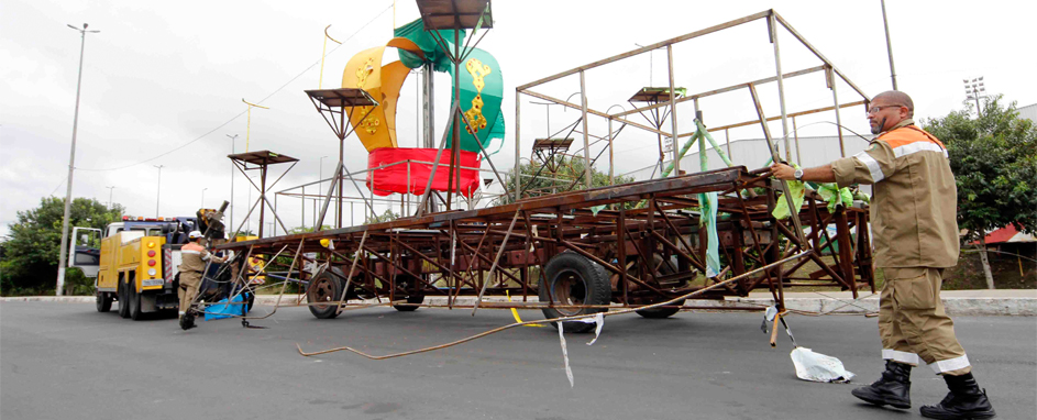 Prefeitura remove alegorias e lixo da Avenida do Samba