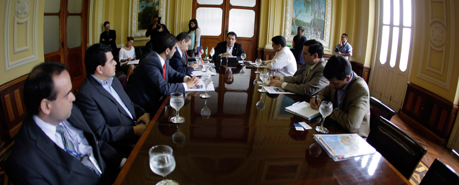 Na manhã desta terça-feira o Prefeito em exercício, Wilker Barreto, recebeu no Centro Cultural Palácio Rio Branco a visita de cortesia do Ministro do Comércio Exterior do Equador, Diego Aulestia, juntamente com uma delegação de empresários equatorianos.