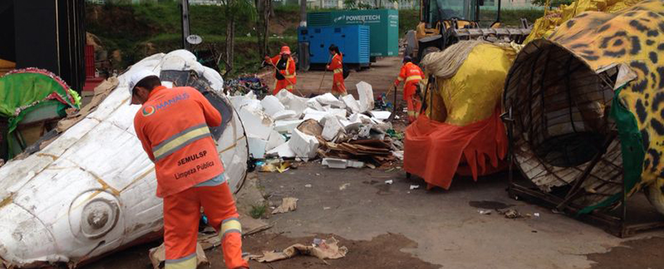 Desde o último fim de semana, 25 garis da Secretaria Municipal de Limpeza Pública (Semulsp) trabalharam na retirada de lixo proveniente dos barracões das Escolas de Samba do Grupo Especial de Manaus localizados na Avenida do Samba, bairro Alvorada, zona Centro-Oeste.