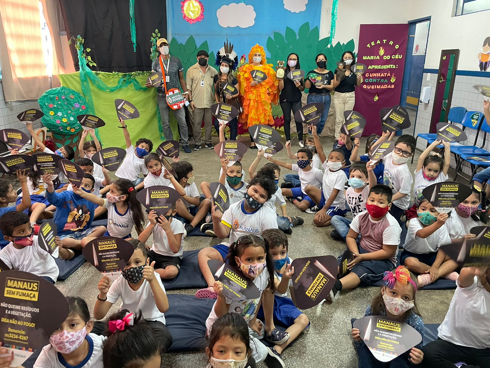 A Prefeitura de Manaus, via Secretaria Municipal de Meio Ambiente e Sustentabilidade (Semmas) e Secretaria Municipal de Educação (Semed), promoveu, nesta quinta-feira, 4/11, mais uma ação da campanha de Combate às Queimadas, em que alunos da educação infantil, da Escola Municipal Maria do Céu, no Planalto, zona Centro-Oeste de Manaus, apresentaram uma peça teatral de fantoches, sobre preservação do meio ambiente e combate às queimadas.