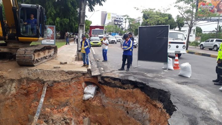 De imediato, a equipe de pronta-resposta da Secretaria Municipal de Infraestrutura (Seminf) foi acionada e já trabalha na avenida, logo após o cruzamento do conjunto Eldorado. Segundo laudo técnico da equipe de infraestrutura, um tubo com mais de 40 anos de existência se rompeu pela ação do tempo e por conta do fluxo das águas do igarapé  do Bindá.