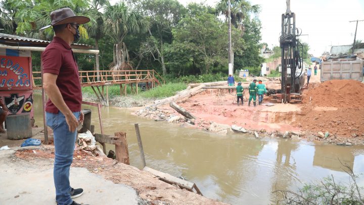 O prefeito de Manaus, David Almeida, acompanhou na manhã desta sexta-feira, 29/10, o andamento da construção de uma ponte de concreto na rua Dom Marcos de Noronha, localizada na comunidade Nobre, Santa Etelvina, zona Norte da capital. A obra tem o término estipulado em até 60 dias e beneficiará mais de 7 mil famílias residentes na localidade, trazendo dignidade à população.