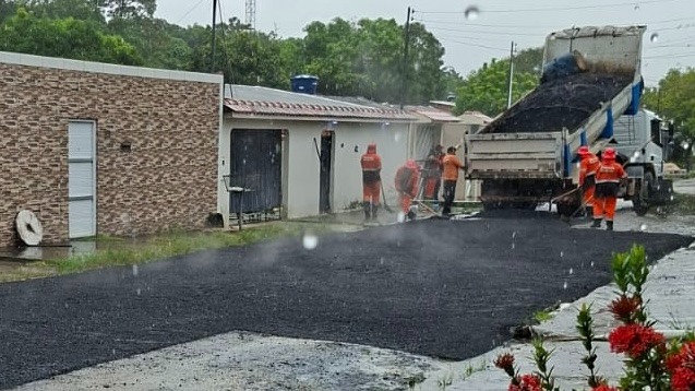 Equipes da Prefeitura de Manaus, por meio da Secretaria Municipal de Infraestrutura (Seminf), executam, nesta quarta-feira, 22/4, o serviço de manutenção asfáltica na rua Guaramiranga, localizada no conjunto Castanheira, no bairro São José Operário, zona Leste da capital, a fim de garantir segurança no tráfego de veículos e pedestres na via.