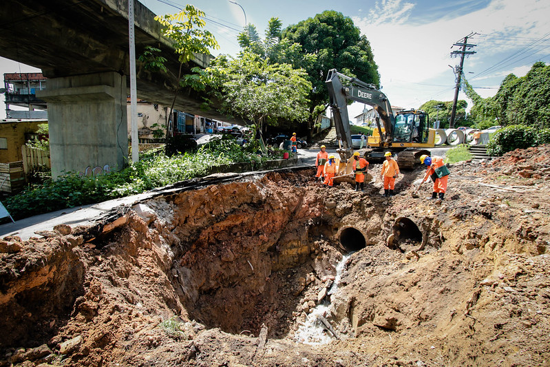 Prefeitura de Manaus intensifica obra emergencial próxima ao viaduto da zona Centro-Sul