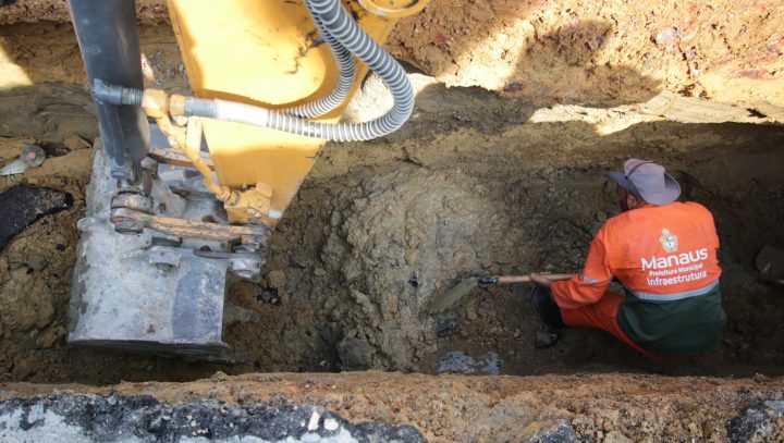 A Prefeitura de Manaus, por meio da Secretaria Municipal de Infraestrutura (Seminf), realiza mais uma obra no bairro Colônia Oliveira Machado, zona Sul da cidade. Na manhã desta terça-feira, 17/8, as equipes trabalham na recuperação de uma rede de drenagem profunda, com aproximadamente 10 metros de extensão, na rua Nossa Senhora da Conceição.