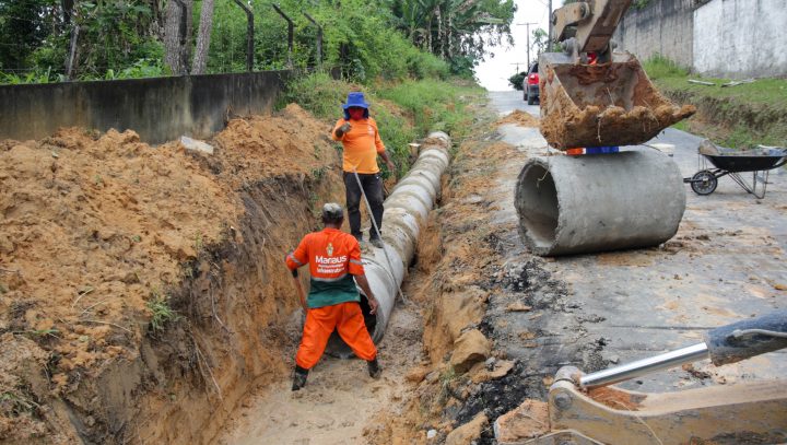 A Prefeitura de Manaus iniciou nesta quarta-feira, 21/7, a implantação de 130 metros de nova rede de drenagem profunda na rua 3 do bairro Puraquequara, zona Leste da capital. O serviço está sendo realizado por mais de dez servidores da Secretaria Municipal de Infraestrutura (Seminf). A obra, com conclusão estimada em 15 dias, se deu em virtude dos recorrentes problemas de alagamentos na área.