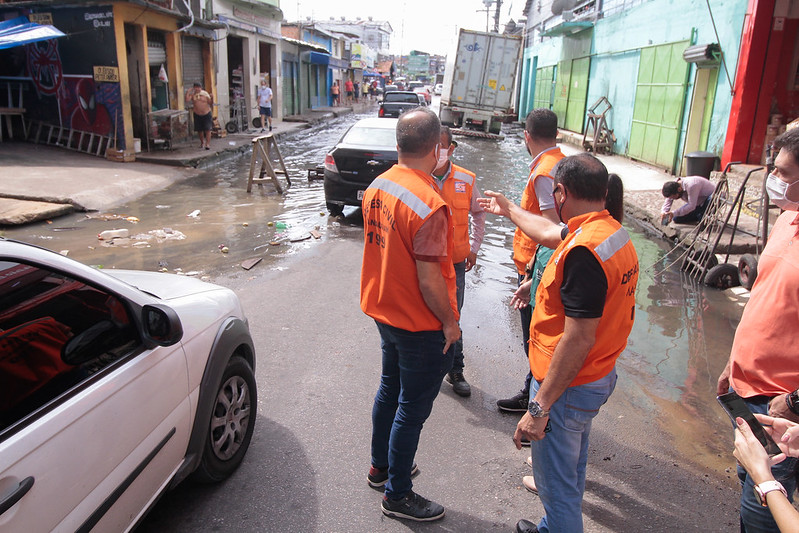 A Prefeitura de Manaus reuniu órgãos municipais no Centro da capital, na manhã deste domingo, 2/5, para avaliar a rua dos Barés,  que já apresenta sinais de alagamento ocasionados pela subida do nível do rio Negro, bem como as demais vias que serão afetadas nos próximos dias pela cheia deste ano. Gestores da Casa Militar, Defesa Civil, Instituto de Mobilidade Urbana (IMMU) e Secretarias Municipais da Mulher, Assistência Social e Cidadania (Semasc), de Saúde (Semsa) e de Limpeza Urbana (Semulsp) analisaram o local e avaliaram as medidas que serão tomadas por meio da “Operação Cheia”, para minimizar os impactos aos comerciantes, feirantes e moradores da região.