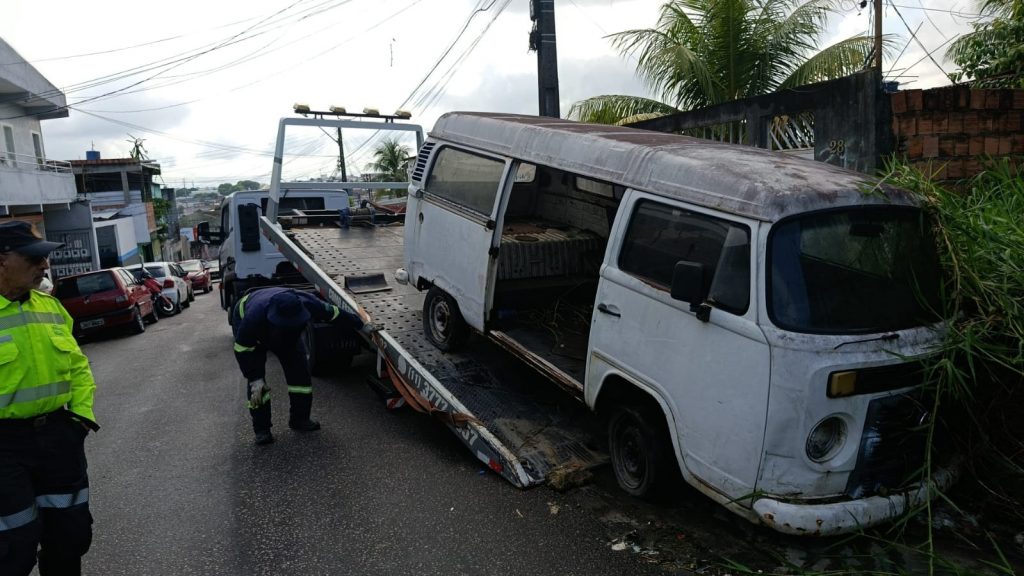 Na zona Norte, os agentes do IMMU executaram a operação “Sucata”, voltada à remoção de veículos abandonados em vias públicas. A ação tem como objetivo eliminar focos de obstrução das calçadas e da pista, reduzir riscos de acidentes, combater a ocupação irregular do espaço público e contribuir para a segurança e a limpeza urbana.