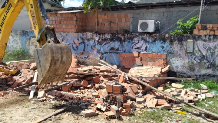 Sem qualquer possibilidade de regularização, por ocupar um passeio público, a demolição administrativa foi realizada na sexta-feira, com ação integrada entre Implurb, Secretaria Municipal de Infraestrutura (Seminf), Guarda Municipal, Grupo de Operações Especiais (GOE) e Instituto Municipal de Mobilidade Urbana (IMMU).