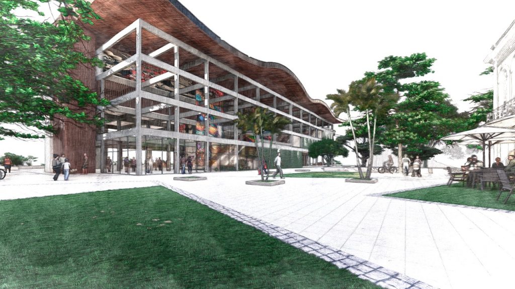 O edifício terá estrutura coberta, mas com espaços abertos que vão permitir, em vários níveis, a contemplação do rio. A obra vai se integrar ao parque urbano, construindo um grande largo, associado à circulação de vários modais e requalificação de áreas vazias.