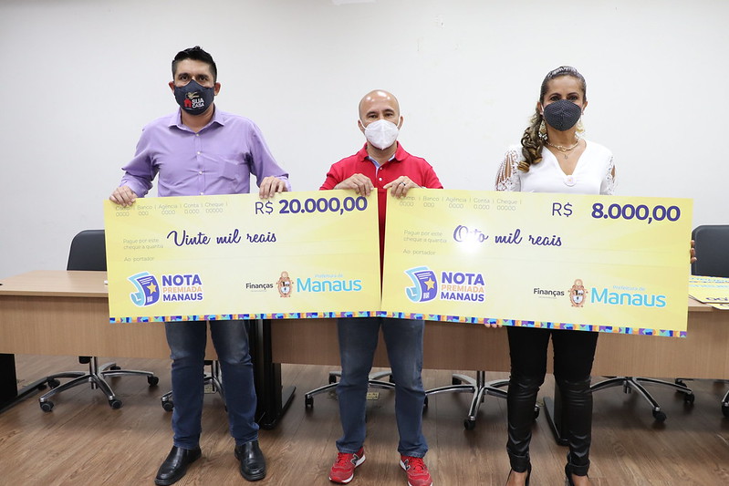 Mais R$ 112 mil foram entregues aos 27 felizardos do terceiro sorteio do ano da campanha Nota Premiada Manaus, da Prefeitura de Manaus. Os cheques simbólicos foram entregues aos ganhadores do sorteio nº 202106 nesta sexta-feira, 11/6, na sede do Manaus Atende, na rua Japurá, 493, Centro. As instituições sociais indicadas também participaram do ato de entrega das premiações.