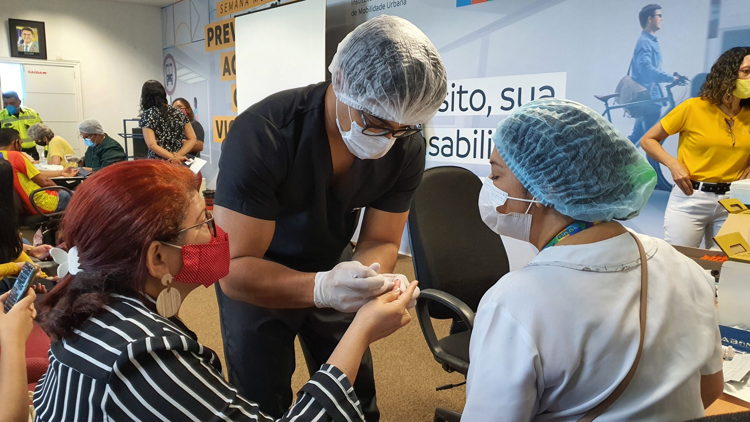 A Prefeitura de Manaus, por meio Instituto Municipal de Mobilidade Urbana (IMMU), com o apoio da Secretaria Municipal de Saúde (Semsa), realizou um mutirão de saúde para vacinar aproximadamente 400 servidores, com doses das vacinas tríplice viral e contra a influenza, além de realização de exame preventivo e testagens rápidas de HIV e hepatites. A ação aconteceu nesta terça-feira, 27/7, na sede do órgão de trânsito no bairro Cachoeirinha, zona Sul.