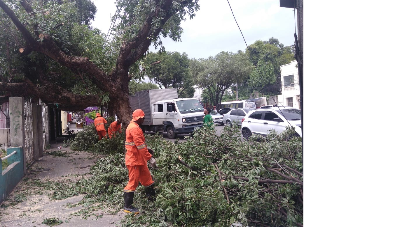 O trabalho é preventivo e visa evitar acidentes envolvendo queda de árvores. Na avenida Getúlio Vargas, o oitizeiro situado na altura do Sheik Club, teve de ser removido totalmente depois de aumentar sua inclinação na madrugada deste sábado, e ficar apoiado apenas em um muro.