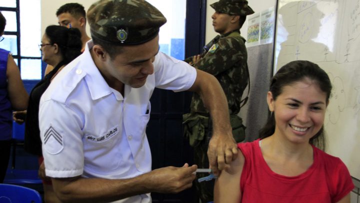 O Plano de Intensificação do Combate ao Sarampo, iniciado pela Prefeitura de Manaus na última segunda-feira (16), ganhou o reforço do Exército Brasileiro neste fim de semana. Um total de 700 homens do Comando Militar da Amazônia (CMA) se dividiu em dez escolas municipais do bairro Jorge Teixeira, na zona Leste, que serviram como postos de vacinação para a população.