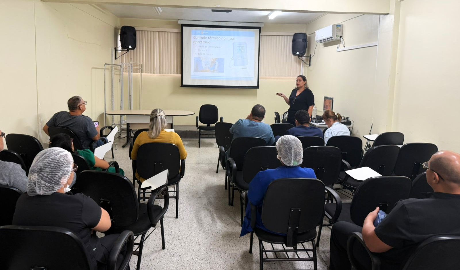 A Comissão de Controle de Infecção Hospitalar da Maternidade Dr. Moura Tapajóz (CCIH/MMT), da Prefeitura de Manaus, promoveu, na manhã desta segunda-feira, 23/3, uma palestra sobre o Protocolo de Prevenção de Infecção de Sítio Cirúrgico. A apresentação do conteúdo ficou a cargo da enfermeira da CCIH/MMT, Kalyria Kyrk, e teve como objetivo reforçar as orientações para que os procedimentos se tornem cada vez mais eficientes e seguros, a fim de diminuir complicações pós-operatórias e promover uma recuperação mais segura e rápida para os pacientes submetidos a cirurgias.