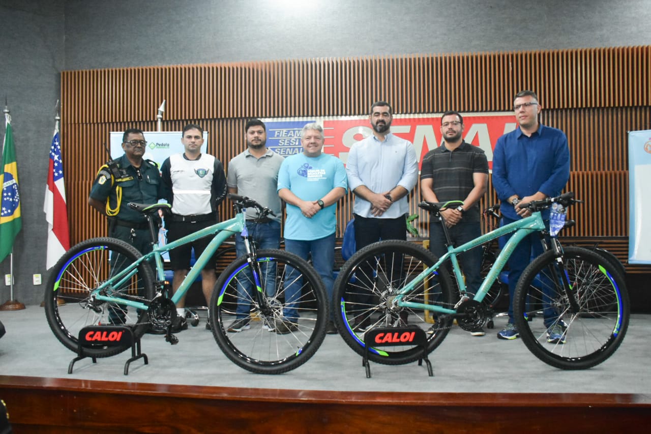 A Prefeitura de Manaus recebeu, na manhã deste sábado, 17/8, durante o 8º Fórum de Bicicletas Manaus, a doação de 50 bicicletas entregues pelo grupo Pedala Manaus, em parceria com a empresa Caloi, que serão direcionadas à Guarda Metropolitana de Manaus. A entrega aconteceu no Departamento Regional do Senai Amazonas, localizado na avenida General Rodrigo Octávio Jordão Ramos, Distrito Industrial, zona Sul.