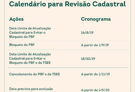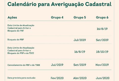 O governo federal realiza a notificação por meio do extrato bancário e carta. A revisão cadastral deve ser efetuada para evitar o bloqueio dos benefícios. O mesmo prazo limite é também para o Grupo 5 e 6 da averiguação cadastral.