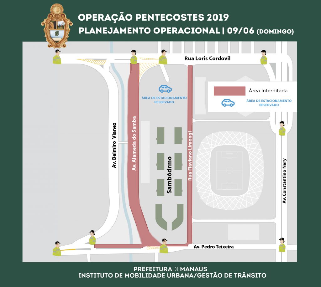 A partir das 8h deste domingo, 9/6, a avenida Pedro Teixeira terá duas faixas destinadas à circulação de pedestres, no trecho entre a alameda do Samba e a frente do Centro de Convenções/Sambódromo, onde será realizado o evento religioso Pentecostes, a partir das 14h. Outras faixas da avenida ficam liberadas para a circulação de veículos.