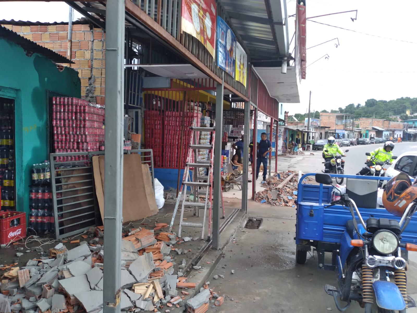 Uma série de obstruções construídas ao longo da estrutura da rede de esgoto, calçadas e meios-fios da rua Hibisco, no Distrito Industrial II, zona Sul, foi demolida administrativamente, nesta quarta-feira, 27/10, em uma ação de correção urbana da Prefeitura de Manaus, por meio da integração entre o Instituto Municipal de Planejamento Urbano (Implurb), Secretaria Municipal de Infraestrutura (Seminf), Guarda Municipal e Grupo de Operações Especiais (GOE), Polícia Militar, Instituto Municipal de Mobilidade Urbana (IMMU) e Grupo Integrado de Prevenção às Invasões em Áreas Públicas (Gipiap).