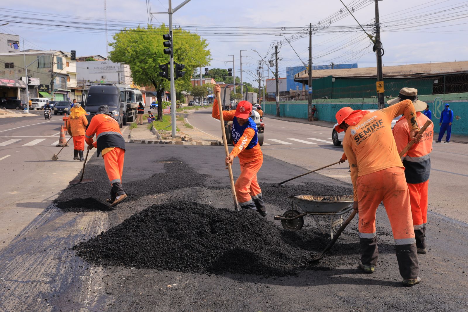 Em outra frente, é realizado o estaqueamento das laterais da avenida Autaz Mirim, onde, nos próximos dias, a Seminf inicia a escavação da trincheira para construção de uma passagem de nível.