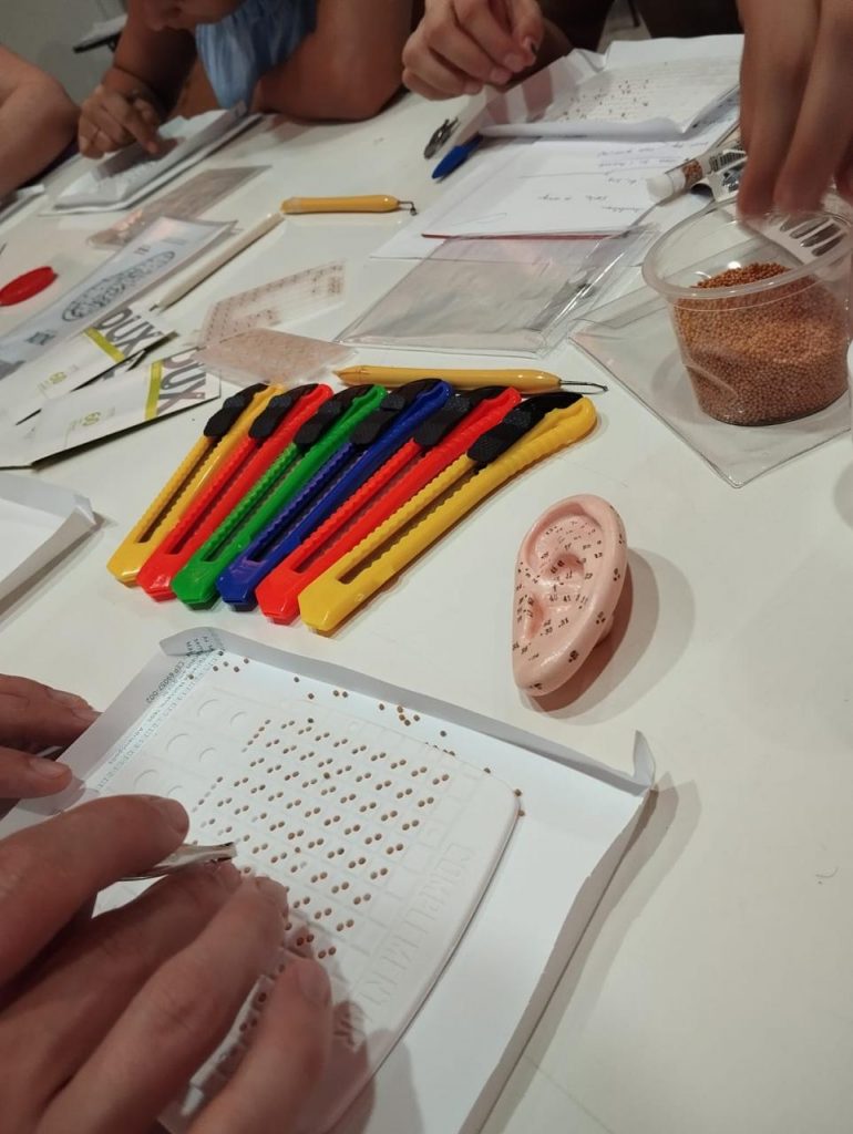 “A medicina tradicional chinesa entende que a orelha é um microssistema de representação de todo o corpo, no âmbito físico, mental e emocional, inclusive dos nossos órgãos. É utilizada uma semente para estímulo de determinados pontos na orelha, de acordo com avaliação de saúde do paciente”, explicou Carla Azevedo.