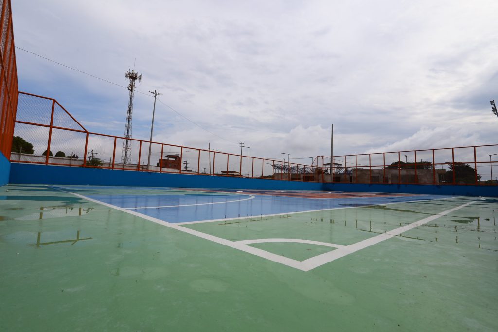 Na parte esportiva, a quadra poliesportiva recebe fixação do suporte de basquete e traves de futsal. Este platô em construção terá três quiosques, uma quadra de areia, dois playgrounds e um playground inclusivo, academia ao ar livre, dois paraciclos, quadra poliesportiva e área de estacionamento.