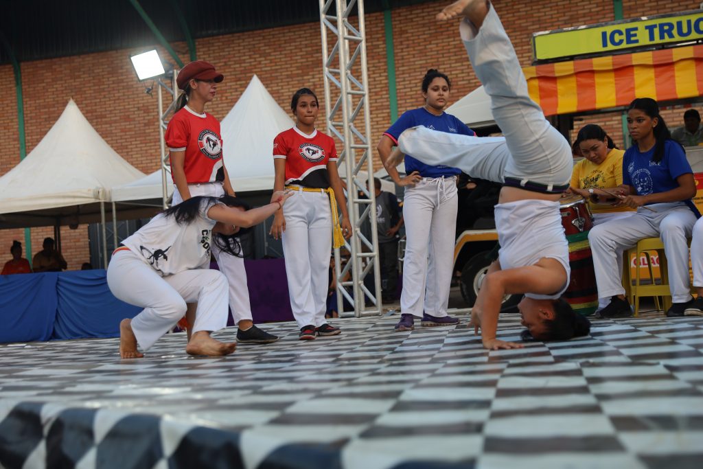 Na sequência, a Associação de Mulheres em Conexão apresentou vários duelos de capoeira. “A gente coloca as mulheres para gingar. Da mais velha à mais nova, sem distinção. É uma forma de empoderá-las”, explica Jardine de Carvalho, coordenadora do coletivo.