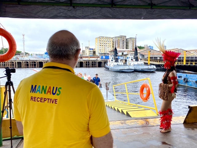 Neste sábado, 11/3, mais de 600 turistas desembarcaram no cais do porto de Manaus, localizado no centro da cidade. A Prefeitura de Manaus, por meio da Fundação Municipal de Cultura, Turismo e Eventos (Manauscult), em parceria com o governo do Estado, via Empresa Estadual de Turismo do Amazonas (Amazonastur), fez o receptivo com a entrega de boas-vindas com colares de sementes de açaí, acompanhados do mapa da cidade, sinalizando as potencialidades turísticas, pesquisa de satisfação, atendimento bilíngue e um Centro de Atendimento ao Turista (CAT).