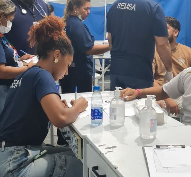 #paratodosverem – Profissionais da Semsa atuando em posto de atendimento do “#SouManaus Passo a Paço 2025”
