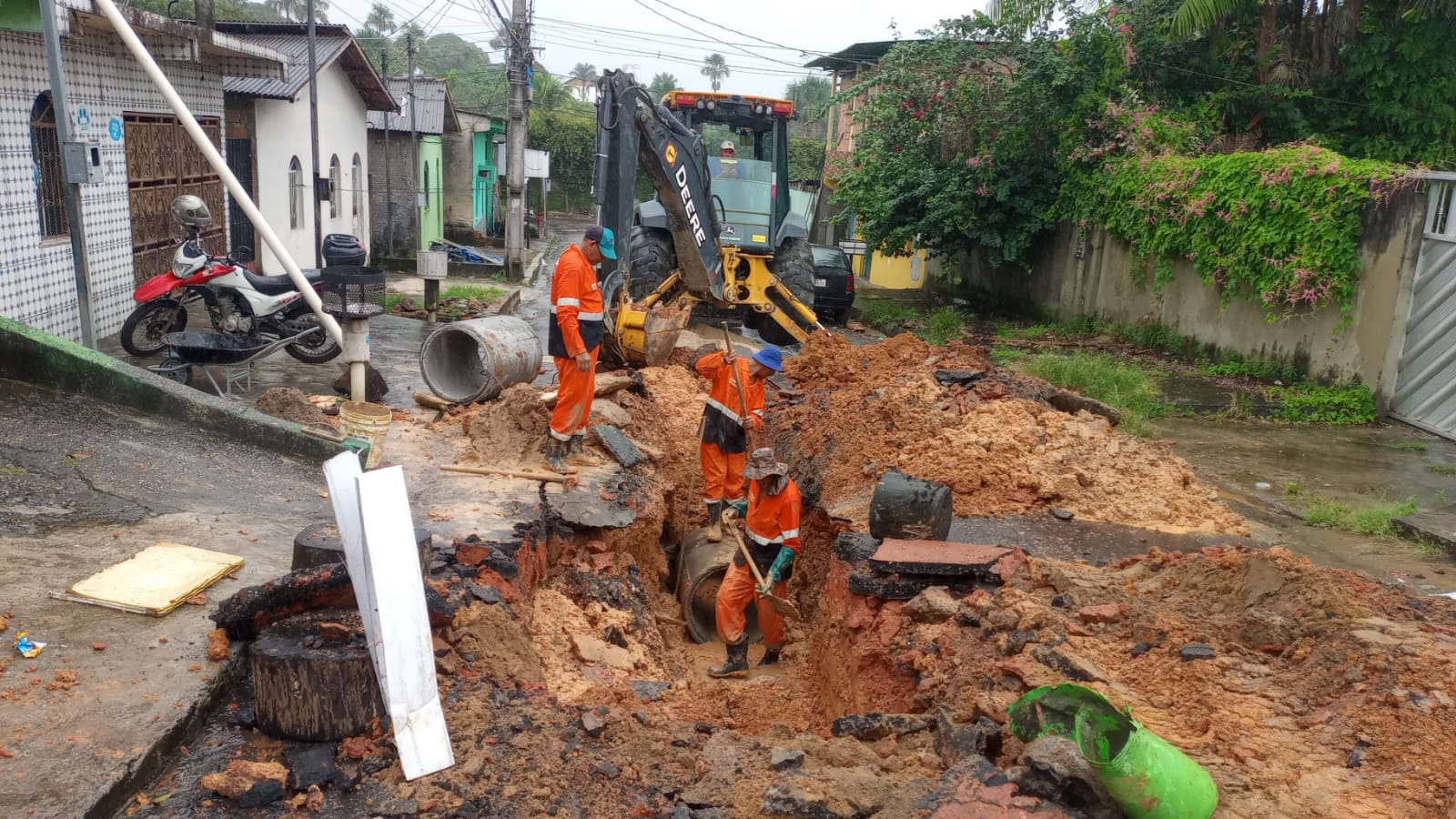 A Prefeitura de Manaus, por meio da Secretaria Municipal de Infraestrutura (Seminf), investe em obras de recuperação e implantação de redes de drenagem profunda para melhorar o escoamento de águas pluviais na rua Iracema, bairro da Paz, zona Centro-Oeste.