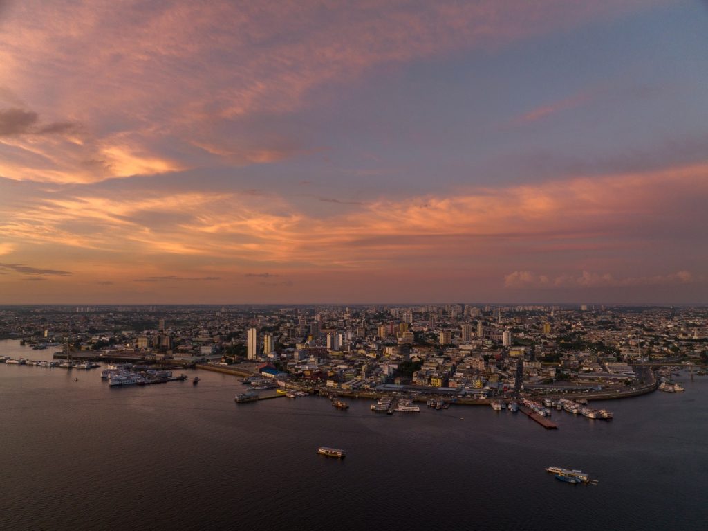 #paratodosverem – Vista do rio e da cidade de Manaus com cenário do pôr-do-sol